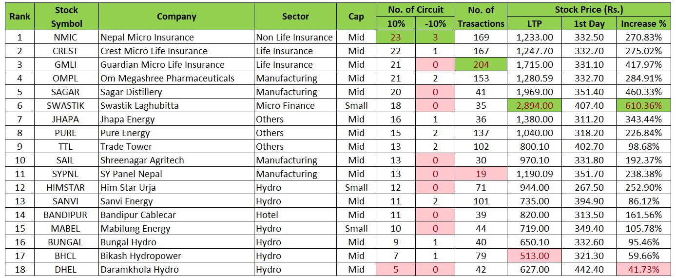 यी मध्ये धेरै सेयरको यात्रा ३००–३५० आसपासको मूल्यबाट सुरु भयो। तर समय बित्दै जाँदा: केहीले दुईगुणा मात्र होइन, केहीले तीनगुणा र कतिपयले पाँच–छ गुणा सम्म जति उडान भरे। विशेषगरी बीमा र माइक्रोफाइनान्स तर्फको माग निकै तातिएको देखिन्छ। ऊर्जा र हाइड्रो समूहमा पनि राम्रो गति देखिए पनि ती अपेक्षाकृत स्थिर तर दिर्घकालीन पैटर्न तर्फ झुकिरहेका छन्।